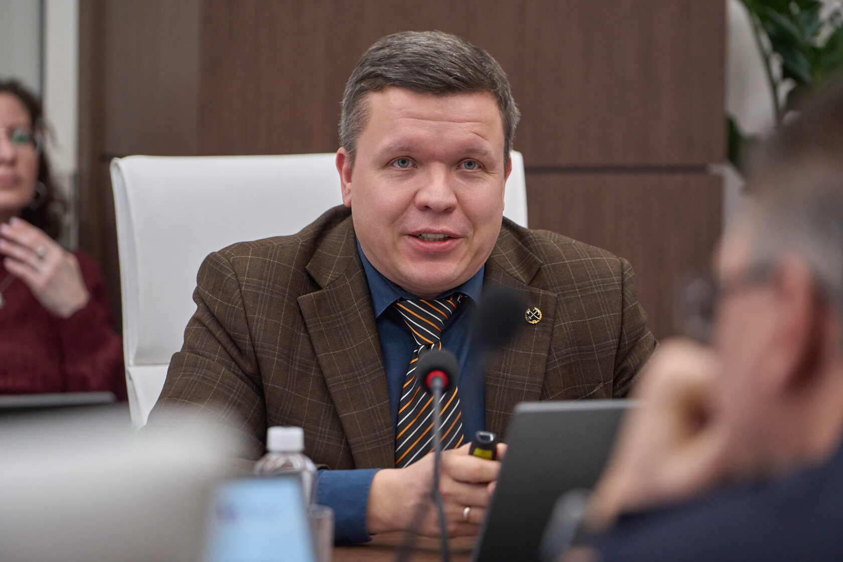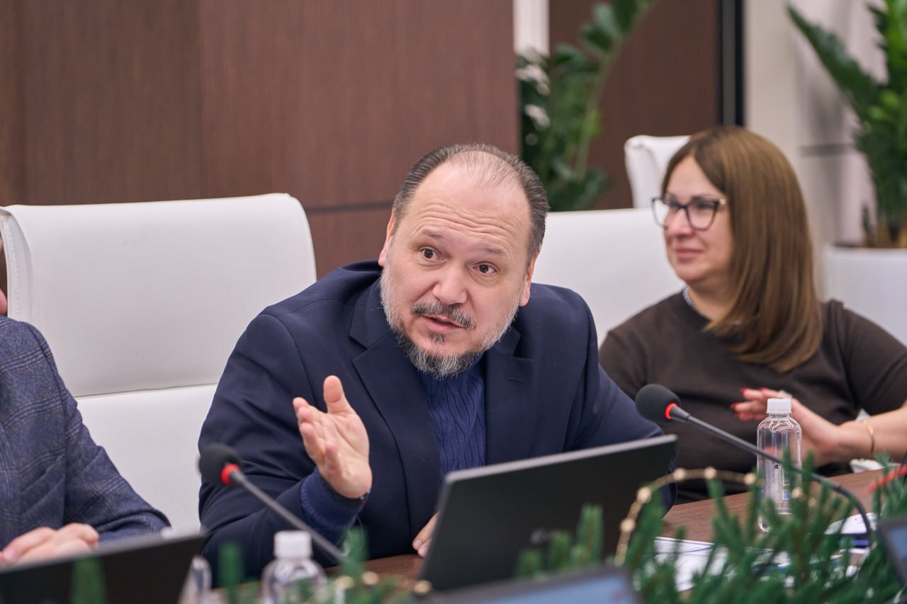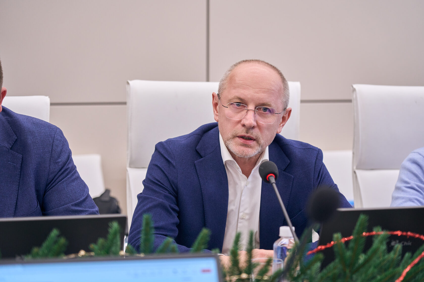 С приветственным словом выступил Николай Быстров — председатель Учебно-методического совета УМЦ ДХ, председатель ТК 418 «Дорожное хозяйство», президент Ассоциации «Р.О.С.АСФАЛЬТ».